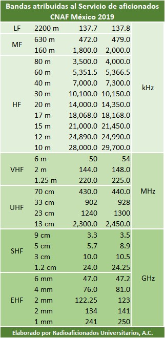 Bandas de frecuencia atribuidas al servicio de aficionados y de aficionados por satélite en México